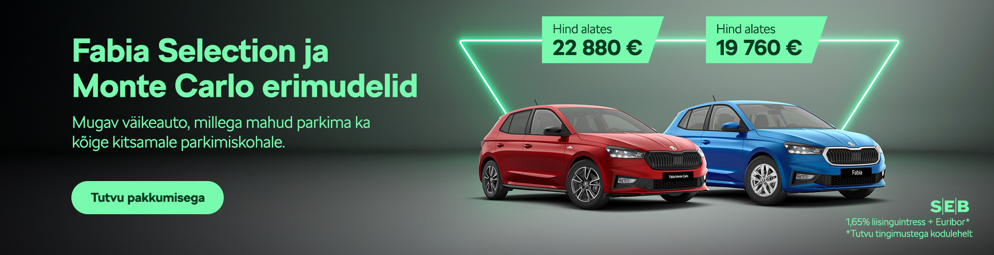 Fabia Monte Carlo 1,0 TSI 85 kW 7-käiguline automaatkäigukast alates 22 880 €
