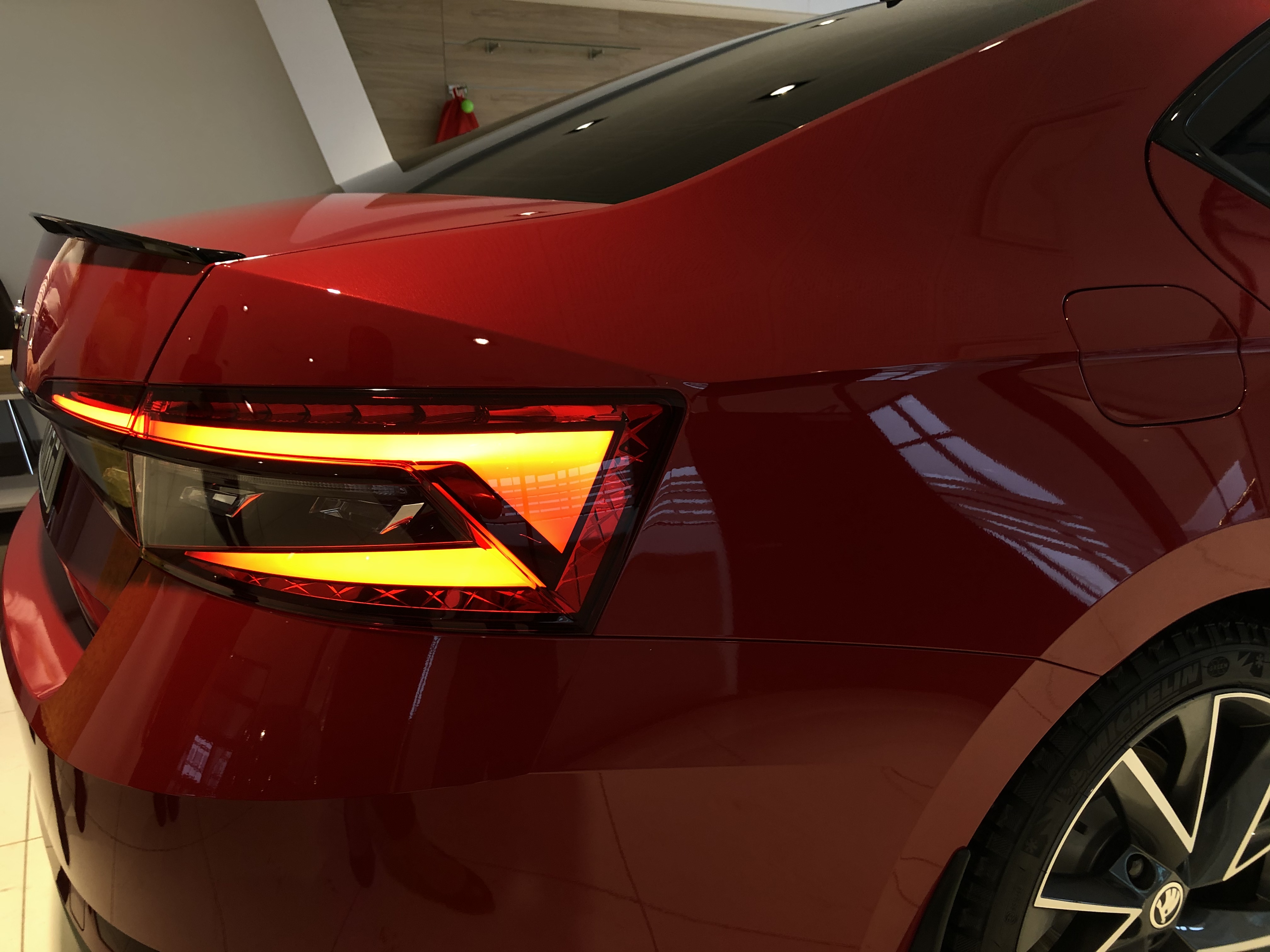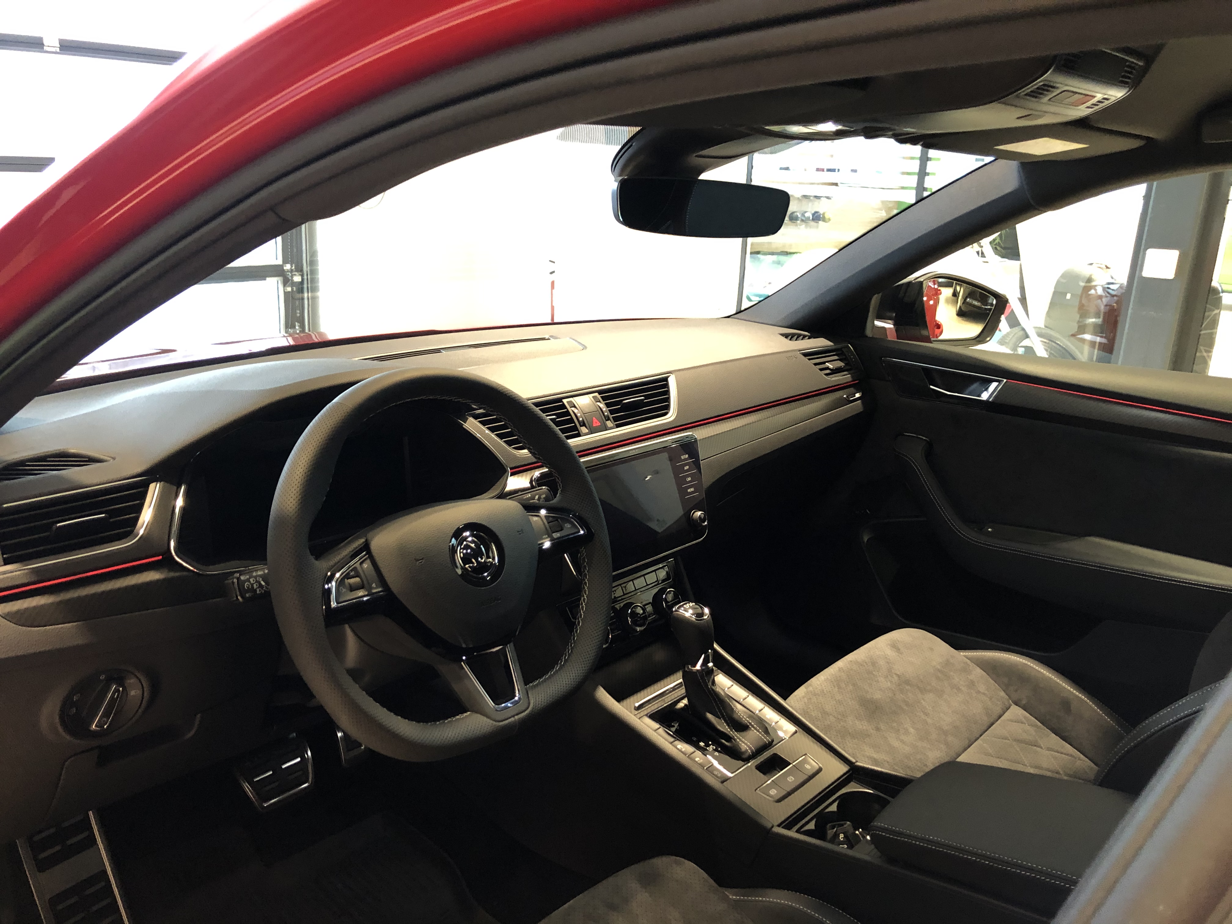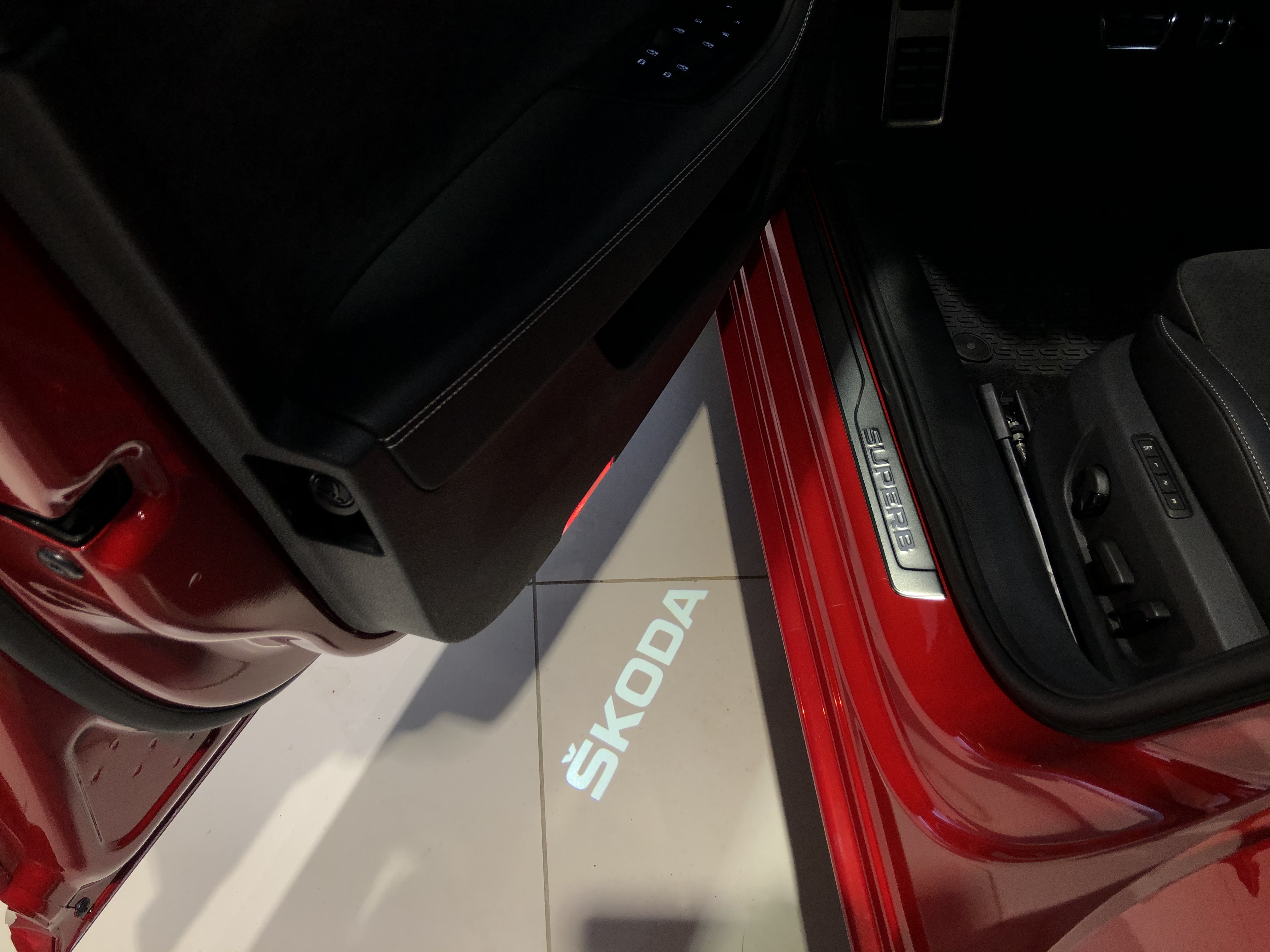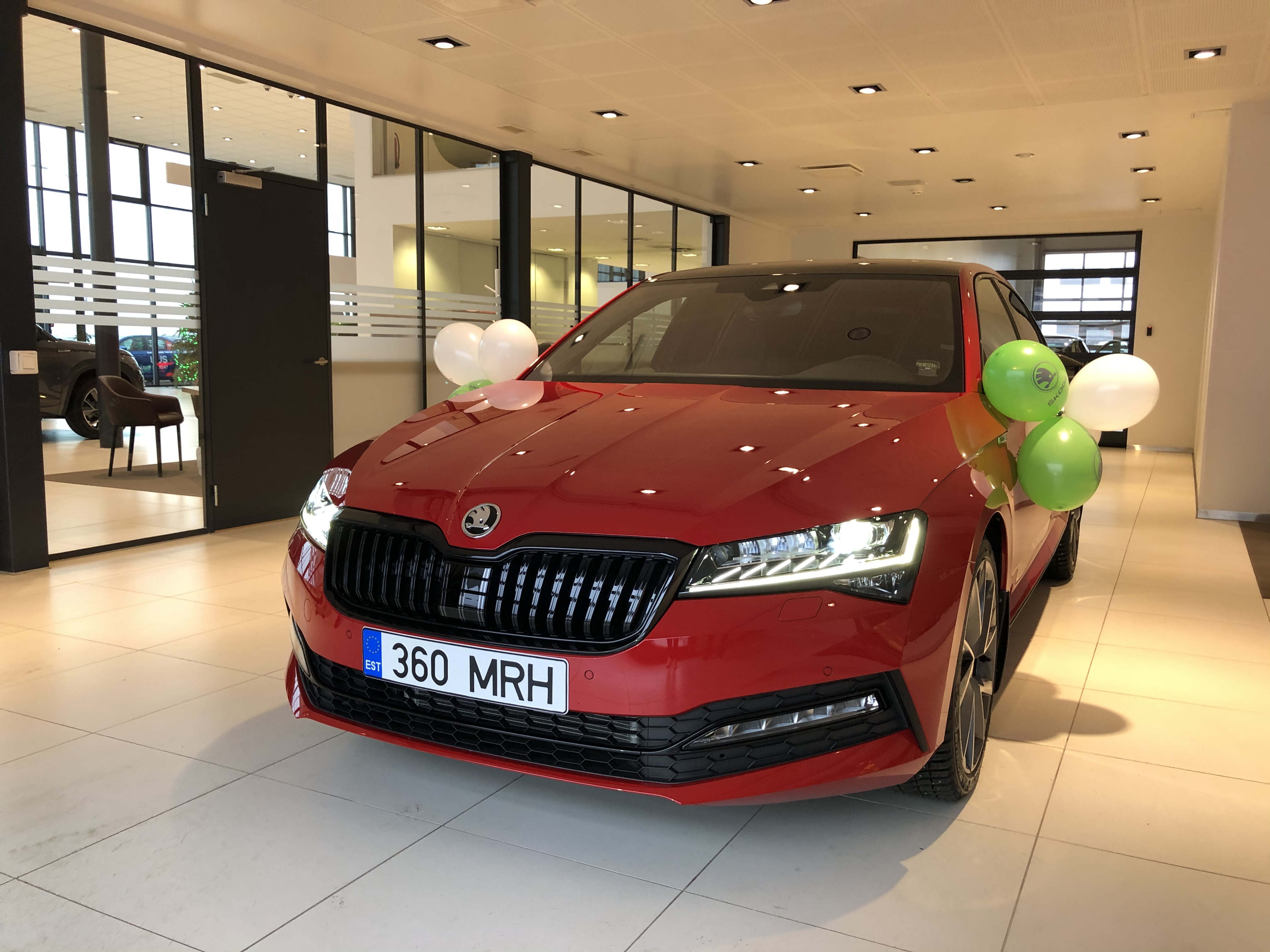 Teie ees on säravpunast Velvet Red premium-metallikvärvi Superb Sportline facelift mudel, millel 2,0 TSI 140kW mootor. Autol on tumedaks toonitud klaasid taga, musta värvi katus ning SPORTLINE’ile omaselt on mustad nii küljepeeglid, aknaliistud kui ka tagaspoiler.
