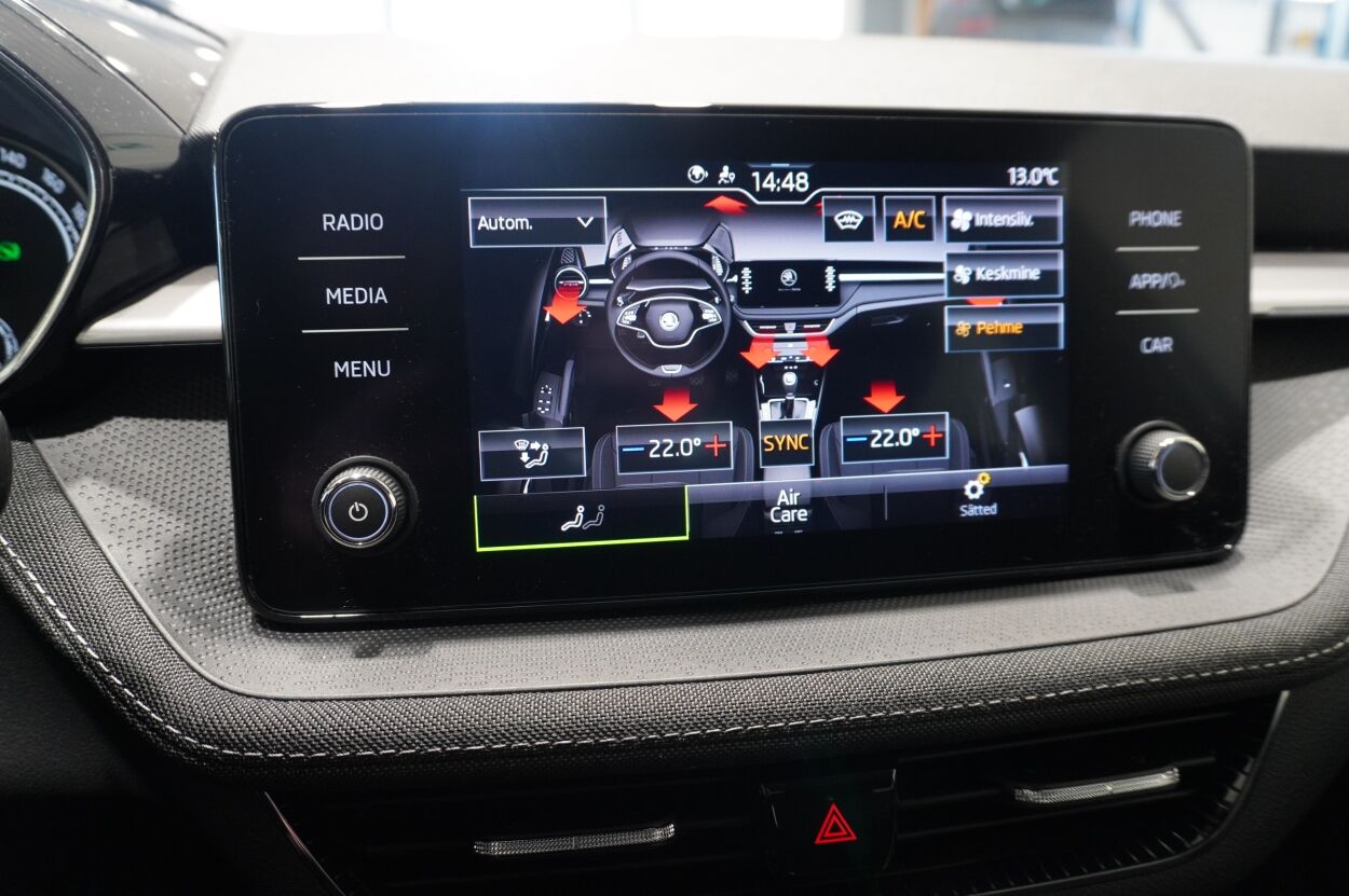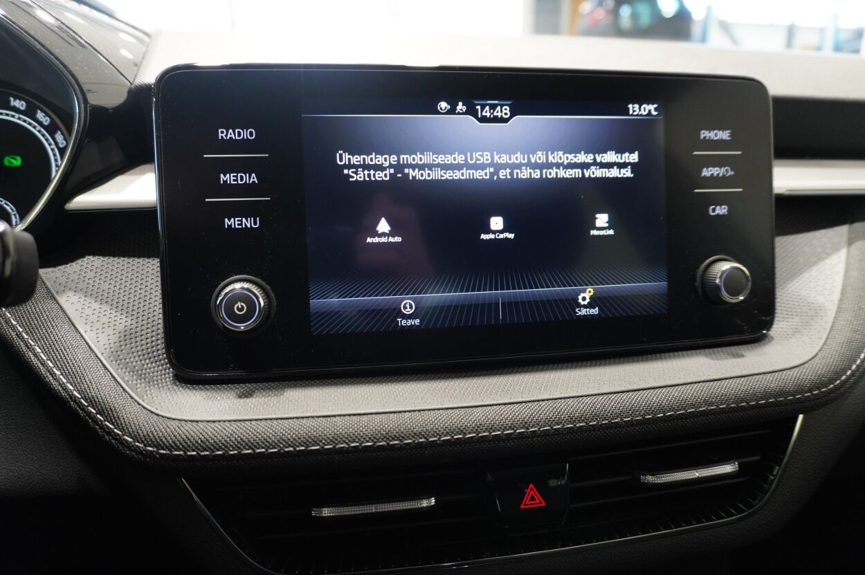 Varustus | kliimaautomaatik, automaatpidurdussüsteem, roolivõimendi (kiirustundlik), kesklukustus (puldiga), ABS pidurid, turvapadi, turvakardinad, immobilisaator, lisapidurituli, stabiilsuskontroll, kokkupõrget ennetav pidurisüsteem, pidurdusjõukontroll, veojõukontroll, vihmasensor, ISOFIX lasteistme kinnitus (ees, taga), kõrvalistuja turvapadja väljalülitamise võimalus, udutuled (eesmised, tagumine), LED (tagatuled, päevatuled, lähituled, kaugtuled), päevasõidutulede automaatne lülitus, suverehvid, valuveljed, rehvirõhu kontrollsüsteem, reguleeritav roolisammas (kõrgus ja sügavus), multifunktsionaalne rool, nahkkattega rool, soojendusega rool, stereo (USB pesaga, originaal), kõlarid, Apple CarPlay, Android Auto, ekraan (ees), autokompuuter, käed vabad süsteem, iluliistud salongis, taskud esiistmete seljatugedes, jalamatid (tekstiilist), topsihoidjad (ees), nahkkattega käigukanginupp, nahkkattega käsipidurikang, tekstiilpolster, istmed reguleeritava kõrgusega (kõrvalistuja iste, juhiiste), 2x istmesoojendused, käetugi ees (laekaga), tagaistme seljatugi allaklapitav, elektrilised välispeeglid (soojendusega), elektrilised akende tõstukid, toonitud klaasid, püsikiiruse hoidja, peeglid päikesesirmides, kohtvalgustid, parkimisandurid (taga), Coming-/Leaving-Home funktsioon, start-stopp süsteem, 12v pistikupesad, reisiarvesti, pagasikate, kaubakinnituse konksud, elektrilise soojendusega esiklaas, tagaklaasi soojendus, välistemperatuuri näidik, tagaklaasi puhasti |