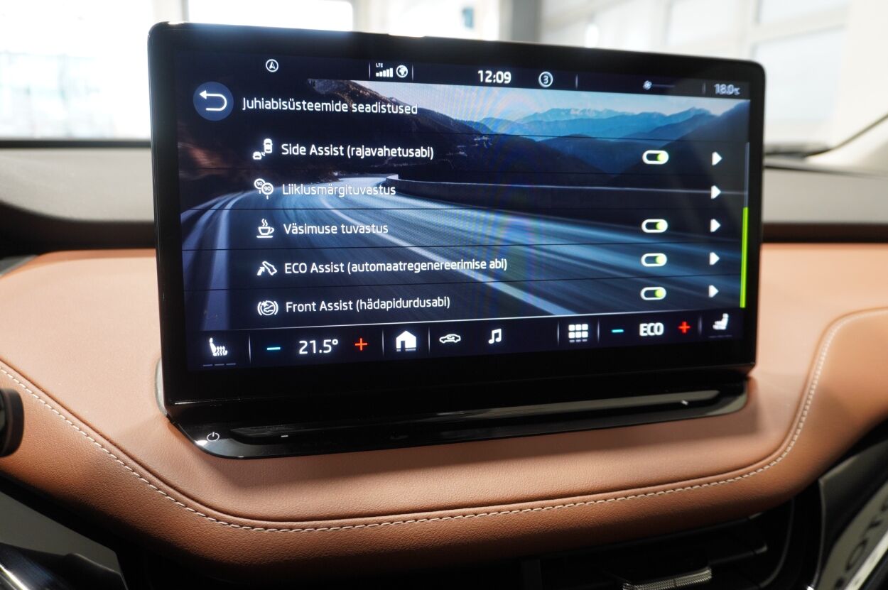 Varustus | kliimaautomaatik, automaatpidurdussüsteem, roolivõimendi (kiirustundlik), kesklukustus (puldiga), ABS pidurid, elektrooniline seisupidur, turvapadi, immobilisaator, signalisatsioon (kaldeanduriga, mahuanduriga), lisapidurituli, stabiilsuskontroll, kokkupõrget ennetav pidurisüsteem, sõiduraja hoidmise abisüsteem, pidurdusjõukontroll, liiklusmärkide tuvastus ja kuvamine, pimenurga hoiatus, veojõukontroll, vihmasensor, ISOFIX lasteistme kinnitus (ees, taga), automaatne paigalseismise funktsioon / mägistardi abi, kõrvalistuja turvapadja väljalülitamise võimalus, juhi väsimuse tuvastamise süsteem, valgustuspakett, udutuled (tagumine), esitulede pesurid, LED (päevatuled, tagatuled, lähituled, kaugtuled), päevasõidutulede automaatne lülitus, suverehvid, valuveljed, rehvirõhu kontrollsüsteem, reguleeritav roolisammas (kõrgus ja sügavus), multifunktsionaalne rool, nahkkattega rool, soojendusega rool, käiguvahetus roolilt, stereo (USB pesaga, originaal), kõlarid, Apple CarPlay, Android Auto, ekraan (ees), navigatsiooniseade (kaardiga), autokompuuter, käed vabad süsteem, iluliistud salongis, taskud esiistmete seljatugedes, jalamatid (tekstiilist, kummist), topsihoidjad (ees, taga), nahkpolster, 2x elektriliselt reguleeritavad istmed (2x mäludega), istmed reguleeritava kõrgusega (juhiiste, kõrvalistuja iste), reguleeritava kumerusega seljatugi (juhiiste, kõrvalistuja iste), 2x istmesoojendused, massaažifunktsiooniga istmed (juhil), käetugi ees (laekaga), käetugi taga, tagaistme seljatugi allaklapitav, elektrilised välispeeglid (soojendusega, kokkuklapitavad), elektrilised akende tõstukid, toonitud klaasid, püsikiiruse hoidja (eessõitjaga distantsi hoidev), peeglid päikesesirmides, 2x rulookardinad ustel, salongi eelsoojendus, eraldi kliimaseade tagaistmetele, automaatselt tumenevad peeglid (väljas), kohtvalgustid, parkimisandurid (ees, taga), parkimiskaamera (360), Coming-/Leaving-Home funktsioon, digitaalne näidikutepaneel, telefoni juhtmevaba laadimine, võtmeta avamine, võtmeta käivitus, 12v pistikupesad, reisiarvesti, pakiruumi avamine elektriliselt (jalaviipega, puldist), pagasikate, katusereelingud, kaubakinnituse konksud, veokonks (elektriline), tagaklaasi soojendus, välistemperatuuri näidik, esi- ja tagarataste porikummid, tagaklaasi puhasti, Laadimisvõimekus avalikest alalisvoolu kiirlaadijatest 125 kW, Comfort Seat Plus: elektriliselt seadistatavad esiistmed (võimalik seadistada istme kõrgust, kaugust roolist, istmepadja ja seljatoe kallet ning nimmetugesid), juhiiste mälu- ning massaažifunktsiooniga, Convenience Plus alarmsüsteemile: KESSY, "Virtual Pedal", telefoni juhtmeta laadimise funktsioon, tumedaks toonitud aknad taga, täiendav mürasummutuspakett, juhi väsimusastet jälgiv süsteem, Drive Sport Plus: adaptiivne vedrustus, sõidurežiimi valik, varieeruva ülekandega sportlik roolisüsteem, soojendusega sportrool, rekuperatsiooni reguleerimise labad roolil, Soojuspump: küttepumbasüsteem soojendab salongiõhku, tarbides tavapäraste kõrgepinge-kütteseadmetega võrreldes vähem energiat ja pakub küttepumbata elektrisõidukitega võrreldes suuremat sõiduulatust, Light & View Plus: maatriks-funktsionaalsusega LED-esilaternad, täiendav LED-valgustuspakett Crystal Face, Full-LED tagatuled koos dünaamiliste suunatuledega taga, esilaternate pesurid, Parkimisandurid ees ja taga + kaameratesüsteem Area View (4 kaamerat), Assisted Drive Basic: reavahetuse abisüsteem (Side Assist), turvasüsteem eesistujatele (Crew Protect Assist), adaptiivne kiirushoidik, automaatselt tumenevad küljepeeglid, Climate Basic: soojendusega esiistmed, soojendusega klaasipesuri düüsid ees, 3-tsooniline kliimaseade Climatronic, Family Basic: rulookardinad tagumistel külgakendel, elektrooniline lastelukk tagaustele, 230V pistik keskonsooli tagaosas, USB-C liidesed keskkonsoolis |