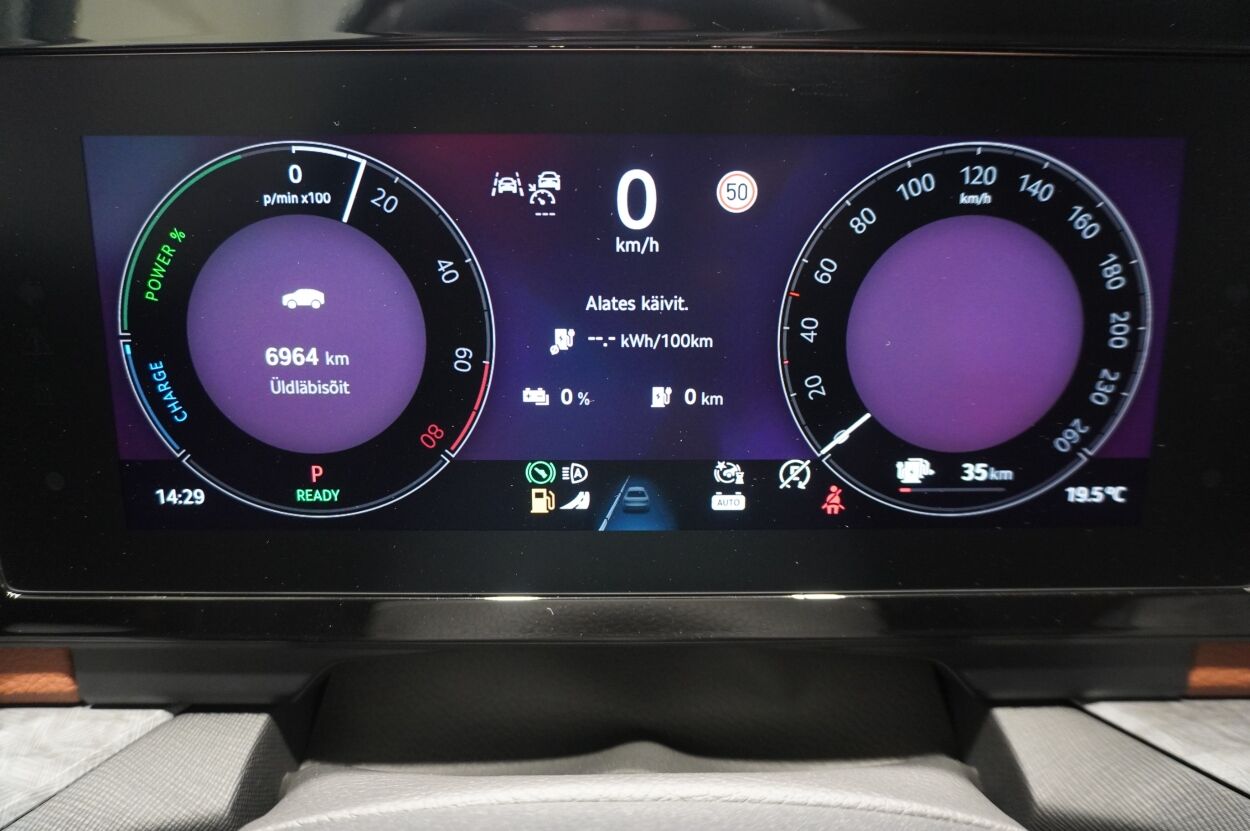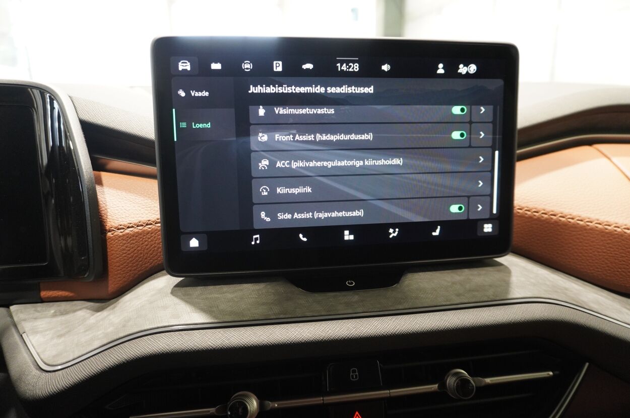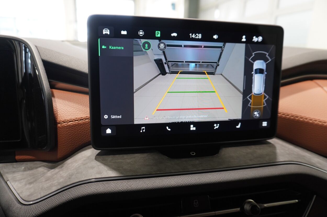 Varustus | kliimaautomaatik, automaatpidurdussüsteem, roolivõimendi (kiirustundlik), kesklukustus (puldiga), ABS pidurid, elektrooniline seisupidur, turvapadi, turvakardinad, immobilisaator, signalisatsioon (kaldeanduriga, mahuanduriga), lisapidurituli, stabiilsuskontroll, kokkupõrget ennetav pidurisüsteem, sõiduraja hoidmise abisüsteem, pidurdusjõukontroll, liiklusmärkide tuvastus ja kuvamine, pimenurga hoiatus, veojõukontroll, vihmasensor, ISOFIX lasteistme kinnitus (ees, taga), automaatne paigalseismise funktsioon / mägistardi abi, kõrvalistuja turvapadja väljalülitamise võimalus, juhi väsimuse tuvastamise süsteem, valgustuspakett, udutuled (eesmised, tagumine), LED (päevatuled, tagatuled, lähituled, kaugtuled), päevasõidutulede automaatne lülitus, kaugtulede ümberlülitamise assistent, talverehvid (lamellrehvid), valuveljed, autoga antakse kaasa (suverehvid), rehvirõhu kontrollsüsteem, reguleeritav roolisammas (kõrgus ja sügavus), multifunktsionaalne rool, nahkkattega rool, soojendusega rool, käiguvahetus roolilt, stereo (USB pesaga, originaal), helivõimendi, kõlarid, Apple CarPlay, Android Auto, ekraan (ees), autokompuuter, käed vabad süsteem, iluliistud salongis, taskud esiistmete seljatugedes, jalamatid (tekstiilist, kummist), topsihoidjad (ees, taga), nahkpolster, 2x elektriliselt reguleeritavad istmed (2x mäludega), istmed reguleeritava kõrgusega (juhiiste, kõrvalistuja iste), reguleeritava kumerusega seljatugi (juhiiste, kõrvalistuja iste), 4x istmesoojendused, käetugi ees (laekaga), käetugi taga, tagaistme seljatugi allaklapitav, elektrilised välispeeglid (soojendusega, kokkuklapitavad), elektrilised akende tõstukid, toonitud klaasid, püsikiiruse hoidja (eessõitjaga distantsi hoidev), peeglid päikesesirmides, salongi eelsoojendus, kohtvalgustid, parkimisandurid (ees, taga), parkimiskaamera, Coming-/Leaving-Home funktsioon, digitaalne näidikutepaneel, telefoni juhtmevaba laadimine, võtmeta avamine, võtmeta käivitus, 12v pistikupesad, reisiarvesti, pakiruumi avamine elektriliselt (puldist), pagasikate, katusereelingud, kaubakinnituse konksud, elektrilise soojendusega esiklaas, tagaklaasi soojendus, välistemperatuuri näidik, esi- ja tagarataste porikummid, tagaklaasi puhasti, Soojendusega esiklaas, Laadimiskaabel ühefaasilisele ühendusele (230 V), Täiendava mürasummutusega esimesed külgaknad, Interjöör Suite Cognac: pruuni värvi nahast istmekatted (perforeeritud), 18" valuveljed Soira, antratsiithallid/poleeritud, Pakett Winter: soojendusega tagumised (äärmised) istmed, 2 kodaraga multifunktsionaalne soojendusega nahkrool, Convenience Plus: el. seadistatavad esiistmed, mälufunktsiooniga, "Virtual Pedal", audiosüsteem Canton: 13 kõlarit + aktiivbassikõlar |