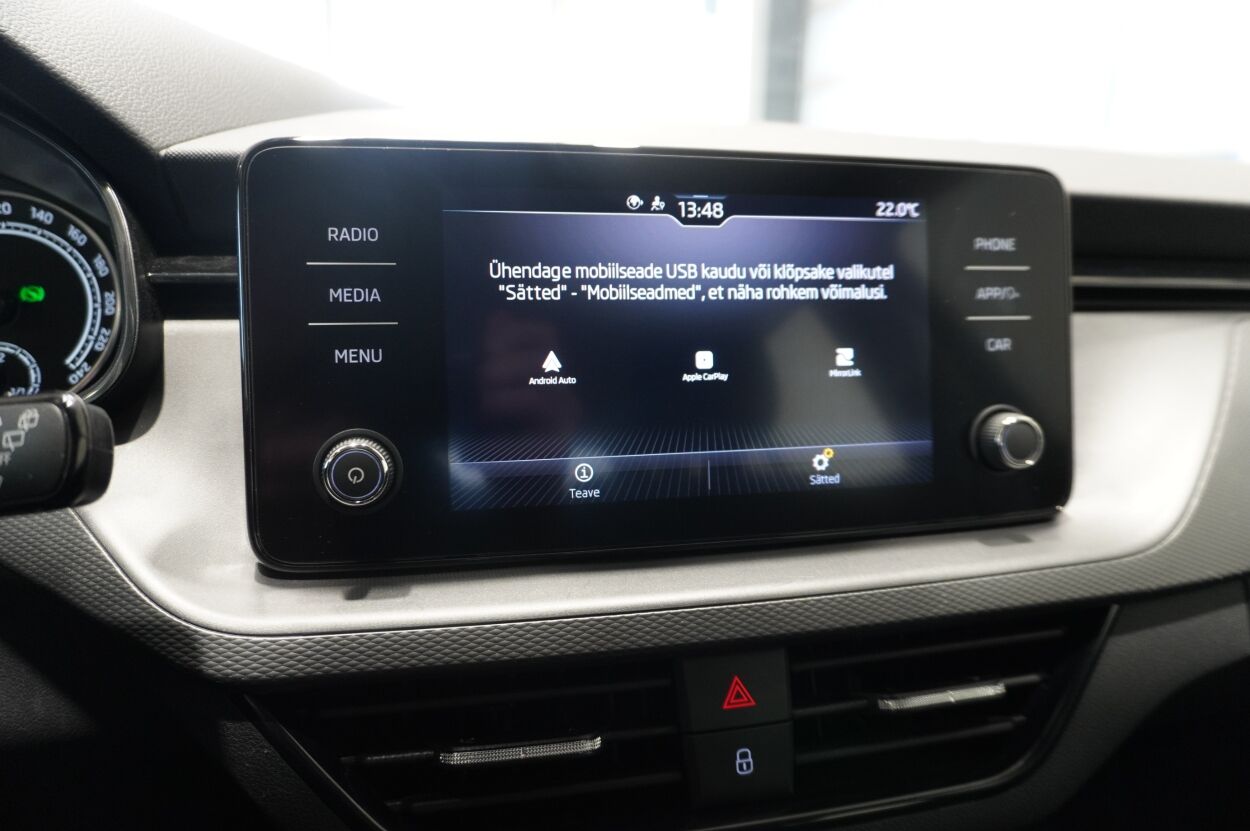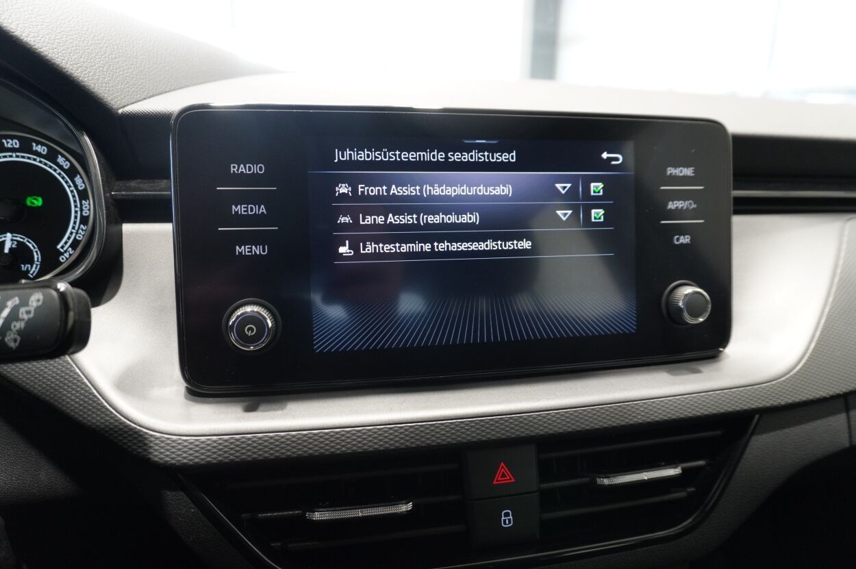 Varustus | kliimaautomaatik, roolivõimendi (kiirustundlik), kesklukustus (puldiga), ABS pidurid, turvapadi, turvakardinad, immobilisaator, signalisatsioon (kaldeanduriga, mahuanduriga), lisapidurituli, stabiilsuskontroll, kokkupõrget ennetav pidurisüsteem, pidurdusjõukontroll, sõiduraja hoidmise abisüsteem, veojõukontroll, vihmasensor, ISOFIX lasteistme kinnitus (taga), kõrvalistuja turvapadja väljalülitamise võimalus, automaatne paigalseismise funktsioon / mägistardi abi, udutuled (eesmised, tagumine), tulede korrektor, LED (päevatuled, tagatuled, lähituled, kaugtuled), päevasõidutulede automaatne lülitus, suverehvid, valuveljed, autoga antakse kaasa (talverehvid (lamellrehvid)), rehvirõhu kontrollsüsteem, reguleeritav roolisammas (kõrgus ja sügavus), multifunktsionaalne rool, nahkkattega rool, stereo (USB pesaga, originaal), kõlarid, Apple CarPlay, Android Auto, ekraan (ees), autokompuuter, käed vabad süsteem, iluliistud salongis, taskud esiistmete seljatugedes, jalamatid (kummist), topsihoidjad (ees), nahkkattega käigukanginupp, nahkkattega käsipidurikang, tekstiilpolster, istmed reguleeritava kõrgusega (juhiiste, kõrvalistuja iste), istmesoojendused, käetugi ees (laekaga), tagaistme seljatugi allaklapitav, elektrilised välispeeglid (soojendusega), elektrilised akende tõstukid, püsikiiruse hoidja, kohtvalgustid, parkimisandurid (ees, taga), Coming-/Leaving-Home funktsioon, tagavararatas, start-stopp süsteem, 12v pistikupesad, reisiarvesti, pagasikate, pagasi võrk pakiruumis, kaubakinnituse konksud, tagaklaasi soojendus, välistemperatuuri näidik, esi- ja tagarataste porikummid, tagaklaasi puhasti |
