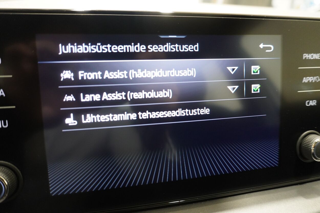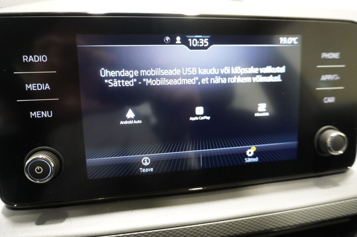 Varustus | kliimaautomaatik, roolivõimendi (kiirustundlik), kesklukustus (puldiga), ABS pidurid, turvapadi, turvakardinad, immobilisaator, signalisatsioon (kaldeanduriga, mahuanduriga), lisapidurituli, stabiilsuskontroll, kokkupõrget ennetav pidurisüsteem, sõiduraja hoidmise abisüsteem, pidurdusjõukontroll, veojõukontroll, vihmasensor, ISOFIX lasteistme kinnitus (taga), automaatne paigalseismise funktsioon / mägistardi abi, kõrvalistuja turvapadja väljalülitamise võimalus, udutuled (eesmised, tagumine), tulede korrektor, LED (päevatuled, tagatuled, lähituled), päevasõidutulede automaatne lülitus, suverehvid, valuveljed, rehvirõhu kontrollsüsteem, reguleeritav roolisammas (kõrgus ja sügavus), multifunktsionaalne rool, nahkkattega rool, stereo (USB pesaga, originaal), kõlarid, Apple CarPlay, Android Auto, ekraan (ees), autokompuuter, käed vabad süsteem, iluliistud salongis, jalamatid (kummist), topsihoidjad (ees), nahkkattega käigukanginupp, nahkkattega käsipidurikang, tekstiilpolster, istmed reguleeritava kõrgusega (kõrvalistuja iste, juhiiste), istmesoojendused, käetugi ees (laekaga), tagaistme seljatugi allaklapitav, elektrilised välispeeglid (soojendusega), elektrilised akende tõstukid, püsikiiruse hoidja, kohtvalgustid, parkimisandurid (ees, taga), Coming-/Leaving-Home funktsioon, tagavararatas, start-stopp süsteem, reisiarvesti, 12v pistikupesad, pagasikate, pagasi võrk pakiruumis, kaubakinnituse konksud, tagaklaasi soojendus, välistemperatuuri näidik, esi- ja tagarataste porikummid, tagaklaasi puhasti |