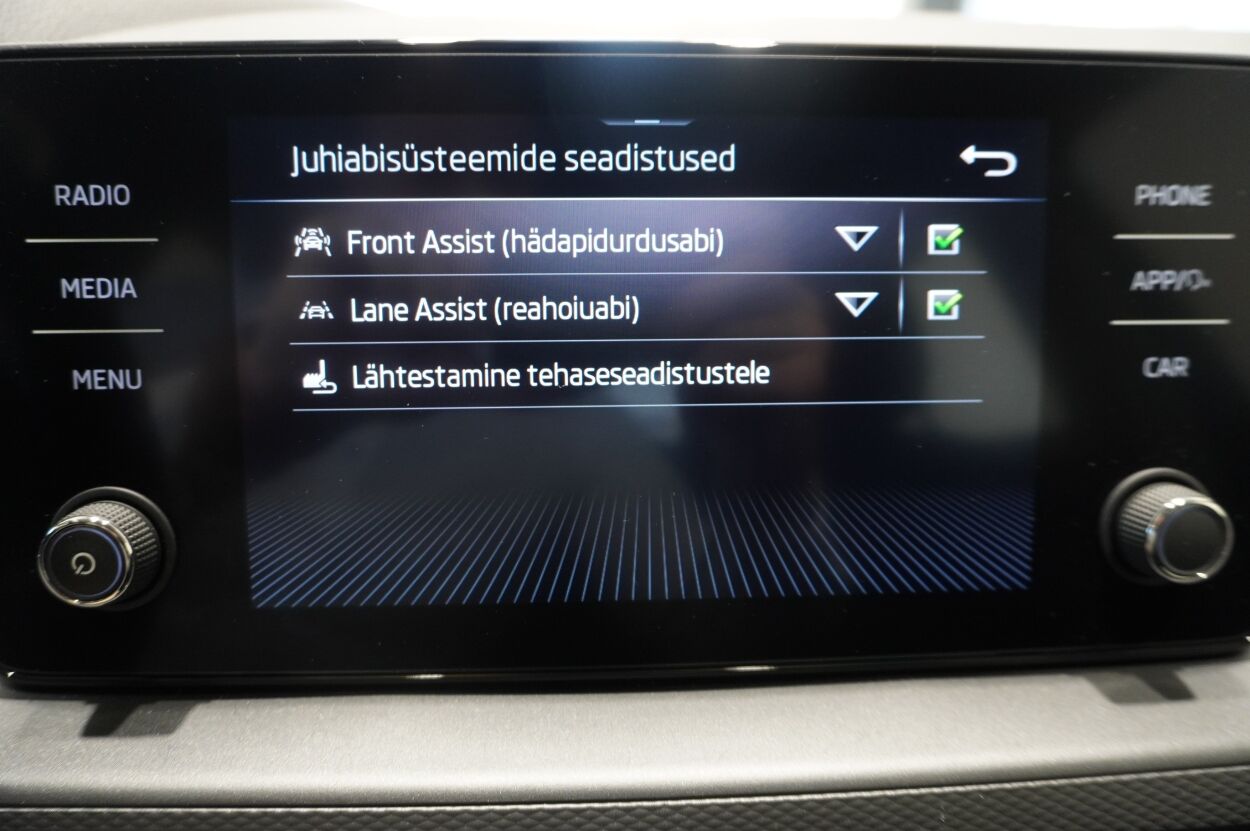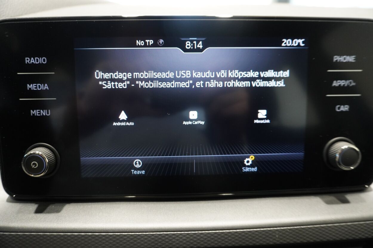 Varustus | kliimaautomaatik, roolivõimendi (kiirustundlik), kesklukustus (puldiga), ABS pidurid, turvapadi, turvakardinad, immobilisaator, signalisatsioon (kaldeanduriga, mahuanduriga), lisapidurituli, stabiilsuskontroll, kokkupõrget ennetav pidurisüsteem, pidurdusjõukontroll, sõiduraja hoidmise abisüsteem, veojõukontroll, vihmasensor, ISOFIX lasteistme kinnitus (taga), kõrvalistuja turvapadja väljalülitamise võimalus, udutuled (eesmised, tagumine), tulede korrektor, LED (päevatuled, tagatuled, lähituled, kaugtuled), päevasõidutulede automaatne lülitus, suverehvid, valuveljed, autoga antakse kaasa (talverehvid (lamellrehvid)), rehvirõhu kontrollsüsteem, reguleeritav roolisammas (kõrgus ja sügavus), multifunktsionaalne rool, nahkkattega rool, stereo (USB pesaga, originaal), kõlarid, Apple CarPlay, Android Auto, ekraan (ees), autokompuuter, käed vabad süsteem, iluliistud salongis, jalamatid (kummist), topsihoidjad (ees), nahkkattega käigukanginupp, nahkkattega käsipidurikang, tekstiilpolster, istmed reguleeritava kõrgusega (kõrvalistuja iste, juhiiste), istmesoojendused, käetugi ees (laekaga), tagaistme seljatugi allaklapitav, elektrilised välispeeglid (soojendusega), elektrilised akende tõstukid, püsikiiruse hoidja, kohtvalgustid, parkimisandurid (ees, taga), Coming-/Leaving-Home funktsioon, tagavararatas, start-stopp süsteem, 12v pistikupesad, reisiarvesti, pagasikate, pagasi võrk pakiruumis, kaubakinnituse konksud, tagaklaasi soojendus, välistemperatuuri näidik, esi- ja tagarataste porikummid, tagaklaasi puhasti |