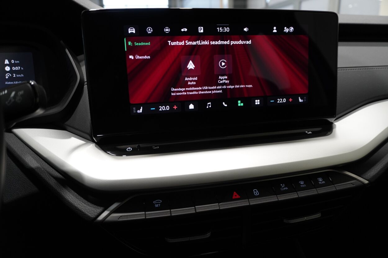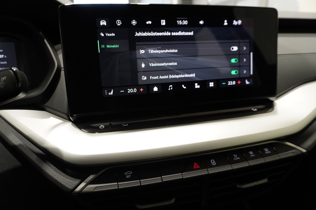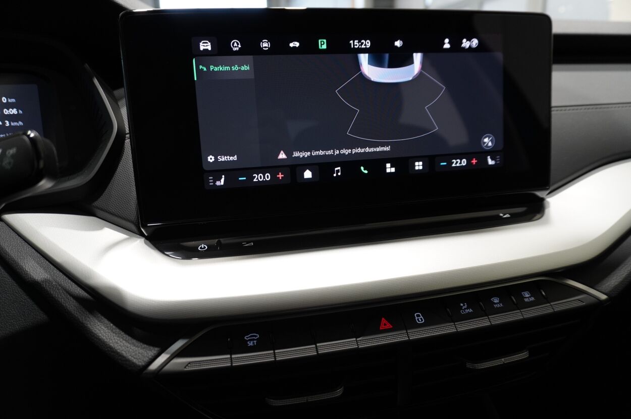 Varustus | kliimaautomaatik, roolivõimendi (kiirustundlik), kesklukustus (puldiga), ABS pidurid, turvapadi, elektrooniline seisupidur, immobilisaator, signalisatsioon (kaldeanduriga, mahuanduriga), lisapidurituli, stabiilsuskontroll, kokkupõrget ennetav pidurisüsteem, pidurdusjõukontroll, sõiduraja hoidmise abisüsteem, liiklusmärkide tuvastus ja kuvamine, veojõukontroll, vihmasensor, ISOFIX lasteistme kinnitus (ees, taga), kõrvalistuja turvapadja väljalülitamise võimalus, automaatne paigalseismise funktsioon / mägistardi abi, juhi väsimuse tuvastamise süsteem, udutuled (tagumine), LED (tagatuled, päevatuled, lähituled, kaugtuled), päevasõidutulede automaatne lülitus, suverehvid, valuveljed, autoga antakse kaasa (talverehvid (lamellrehvid)), rehvirõhu kontrollsüsteem, reguleeritav roolisammas (kõrgus ja sügavus), multifunktsionaalne rool, nahkkattega rool, käiguvahetus roolilt, stereo (USB pesaga, originaal), kõlarid, Apple CarPlay, Android Auto, ekraan (ees), autokompuuter, käed vabad süsteem, iluliistud salongis, jalamatid (tekstiilist), pagasiruumi matt, topsihoidjad (ees), tekstiilpolster, istmed reguleeritava kõrgusega (juhiiste, kõrvalistuja iste), 2x istmesoojendused, käetugi ees (laekaga), tagaistme seljatugi allaklapitav, elektrilised välispeeglid (soojendusega), elektrilised akende tõstukid, toonitud klaasid, püsikiiruse hoidja, kohtvalgustid, parkimisandurid (taga), Coming-/Leaving-Home funktsioon, digitaalne näidikutepaneel, tagavararatas, võtmeta avamine, võtmeta käivitus, start-stopp süsteem, 12v pistikupesad, reisiarvesti, pagasikate, kaubakinnituse konksud, tagaklaasi soojendus, välistemperatuuri näidik, esi- ja tagarataste porikummid, Lisagarantii, 50 000 km (garantiiperiood kokku 5 aastat / 150 000 km), Ettevalmistus haagisekonksu paigaldamiseks (ilma tootjapoolse ettevalmistuseta ei ole hilisem konksu paigaldamine võimalik) |