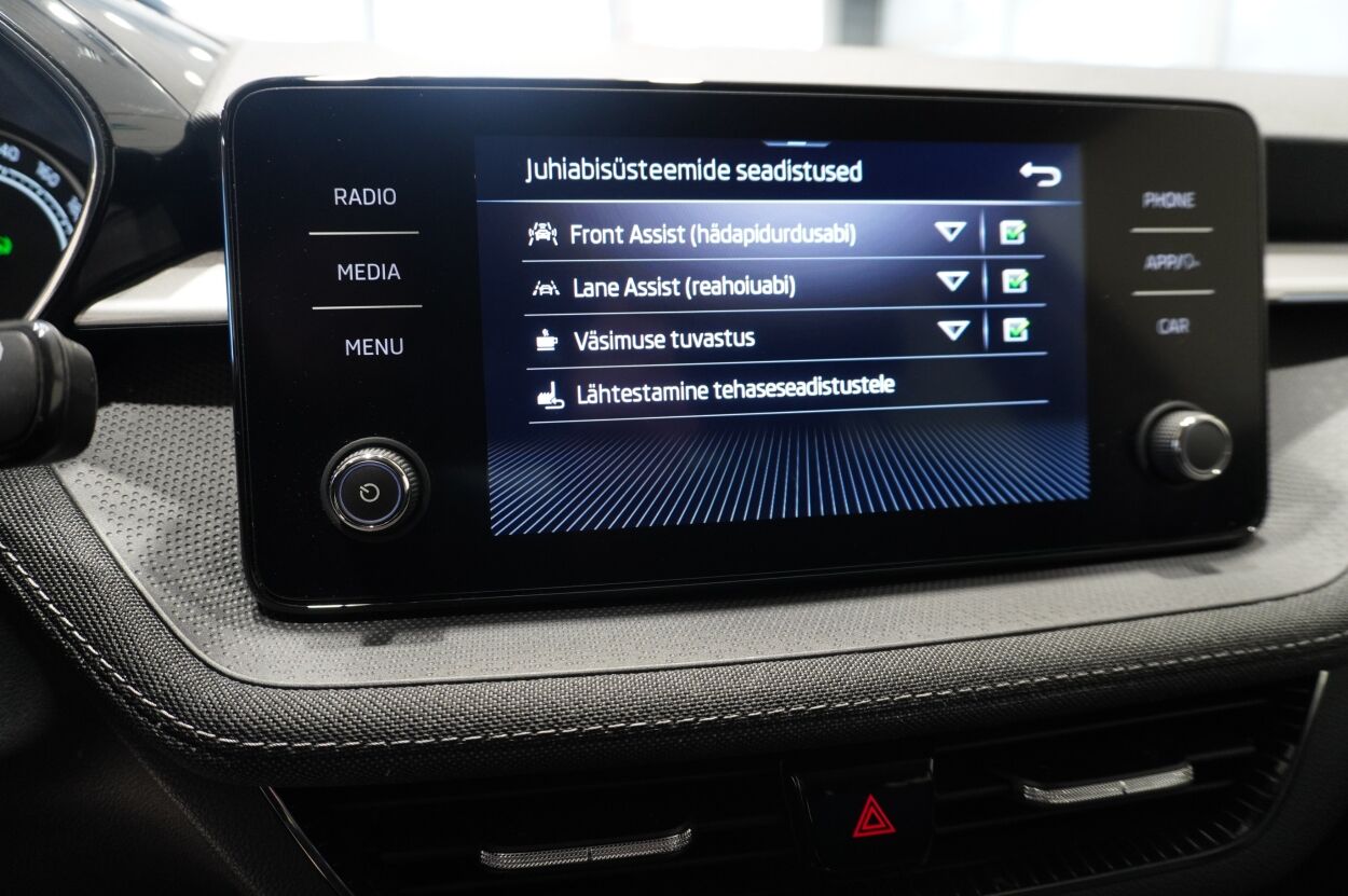 Varustus | kliimaautomaatik, automaatpidurdussüsteem, roolivõimendi (kiirustundlik), kesklukustus (puldiga), ABS pidurid, turvapadi, turvakardinad, immobilisaator, signalisatsioon (kaldeanduriga, mahuanduriga), lisapidurituli, stabiilsuskontroll, kokkupõrget ennetav pidurisüsteem, sõiduraja hoidmise abisüsteem, pidurdusjõukontroll, veojõukontroll, vihmasensor, ISOFIX lasteistme kinnitus (ees, taga), kõrvalistuja turvapadja väljalülitamise võimalus, juhi väsimuse tuvastamise süsteem, udutuled (eesmised, tagumine), LED (tagatuled, päevatuled, lähituled, kaugtuled), päevasõidutulede automaatne lülitus, suverehvid, valuveljed, rehvirõhu kontrollsüsteem, reguleeritav roolisammas (kõrgus ja sügavus), multifunktsionaalne rool, nahkkattega rool, stereo (USB pesaga, originaal), kõlarid, Apple CarPlay, Android Auto, ekraan (ees), autokompuuter, käed vabad süsteem, iluliistud salongis, taskud esiistmete seljatugedes, jalamatid (kummist), pagasiruumi matt, topsihoidjad (ees), nahkkattega käigukanginupp, tekstiilpolster, istmed reguleeritava kõrgusega (kõrvalistuja iste, juhiiste), istmesoojendused, käetugi ees (laekaga), tagaistme seljatugi allaklapitav, elektrilised välispeeglid (soojendusega), elektrilised akende tõstukid, toonitud klaasid, püsikiiruse hoidja, kohtvalgustid, parkimisandurid (taga), Coming-/Leaving-Home funktsioon, võtmeta avamine, võtmeta käivitus, start-stopp süsteem, 12v pistikupesad, reisiarvesti, paigaldatud tulekustuti, pagasikate, kaubakinnituse konksud, tagaklaasi soojendus, välistemperatuuri näidik, esi- ja tagarataste porikummid, tagaklaasi puhasti |