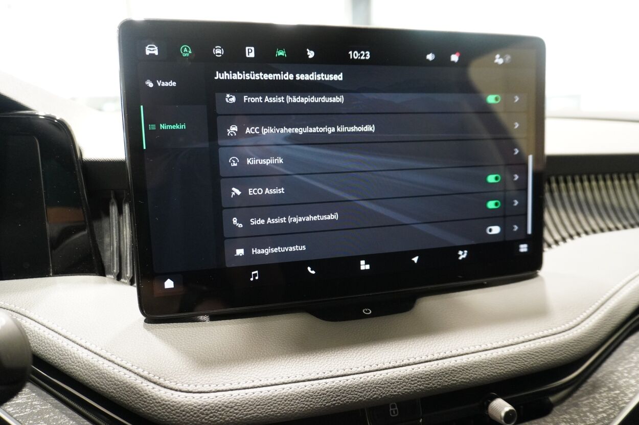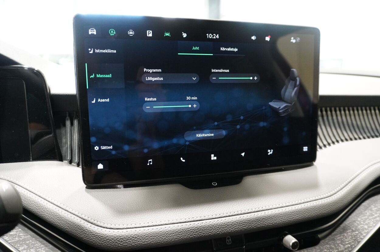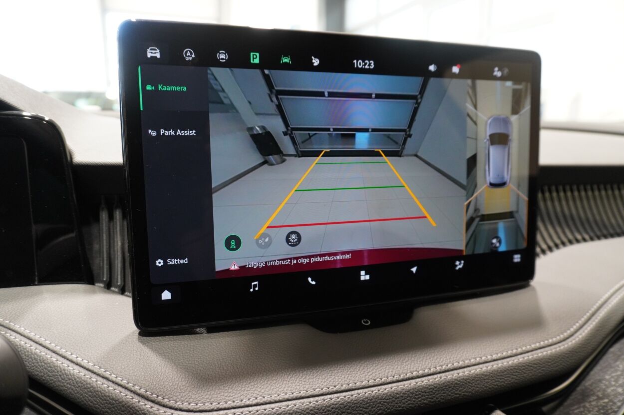 Varustus | kliimaautomaatik, automaatpidurdussüsteem, roolivõimendi (kiirustundlik), kesklukustus (puldiga), ABS pidurid, elektrooniline seisupidur, turvapadi, turvakardinad, immobilisaator, signalisatsioon (kaldeanduriga, mahuanduriga), lisapidurituli, kokkupõrget ennetav pidurisüsteem, stabiilsuskontroll, pidurdusjõukontroll, sõiduraja hoidmise abisüsteem, liiklusmärkide tuvastus ja kuvamine, pimenurga hoiatus, veojõukontroll, turvavööde eelpingutid esiistmetel, vihmasensor, ISOFIX lasteistme kinnitus (ees, taga), kõrvalistuja turvapadja väljalülitamise võimalus, automaatne paigalseismise funktsioon / mägistardi abi, juhi väsimuse tuvastamise süsteem, valgustuspakett, udutuled (eesmised, tagumine), LED (päevatuled, tagatuled, lähituled, kaugtuled), päevasõidutulede automaatne lülitus, kaugtulede ümberlülitamise assistent, suverehvid, valuveljed, autoga antakse kaasa (talverehvid (lamellrehvid)), rehvirõhu kontrollsüsteem, reguleeritav roolisammas (kõrgus ja sügavus), multifunktsionaalne rool, nahkkattega rool, soojendusega rool, käiguvahetus roolilt, stereo (USB pesaga, originaal), helivõimendi, kõlarid, Apple CarPlay, Android Auto, ekraan (ees), navigatsiooniseade (kaardiga), autokompuuter, käed vabad süsteem, iluliistud salongis, taskud esiistmete seljatugedes, jalamatid (tekstiilist), topsihoidjad (ees, taga), nahkpolster, 2x elektriliselt reguleeritavad istmed (2x mäludega), istmed reguleeritava kõrgusega (juhiiste, kõrvalistuja iste), 4x istmesoojendused, reguleeritava kumerusega seljatugi (juhiiste, kõrvalistuja iste), massaažifunktsiooniga istmed (juhil, kõrvalistmel), ventileeritavad istmed (ees), käetugi ees (laekaga), käetugi taga, tagaistme seljatugi allaklapitav, elektrilised välispeeglid (soojendusega, kokkuklapitavad), elektrilised akende tõstukid, toonitud klaasid, püsikiiruse hoidja (eessõitjaga distantsi hoidev), peeglid päikesesirmides (valgustusega), 2x rulookardinad ustel, kohtvalgustid, parkimisandurid (ees, taga), automaatse parkimise funktsioon, parkimiskaamera (360), Coming-/Leaving-Home funktsioon, digitaalne näidikutepaneel, telefoni juhtmevaba laadimine, tagavararatas, võtmeta avamine, võtmeta käivitus, start-stopp süsteem, 12v pistikupesad, reisiarvesti, paigaldatud tulekustuti, pakiruumi avamine elektriliselt (puldist), pagasikate (automaatne), katusereelingud, pagasi võrk pakiruumis, kaubakinnituse konksud, tagaklaasi soojendus, välistemperatuuri näidik, esi- ja tagarataste porikummid, tagaklaasi puhasti, Pagasiruumi topeltpõhi + kinnitusvarras pagasi paigutamiseks, ruumisäästev varuratas, Audiosüsteem Canton: 13 kõlarit + aktiivbassikõlar pagasiruumis, digitaalne võimendi, koguvõimsus 725W, Pakett Family&Business: spetsiaalsed peatoed teises istmereas, rulookardinad tagumistel külgakendel, külgturvapadjad taga, tahvelarvuti hoidik, Interjöör Suite Black: perforeeritud istmekatted nahk/kunstnahk, musta värvi, ergonoomilised esiistmed, elektriliselt seadistatavad, Maatriks-funktsionaalsusega LED-esilaternad + dünaamilised suunatuled taga, Launch pakett: mürasummutusega esimesed ja tagumised külgaknad, Škoda Navigation, 13" puutetundlik värviekraan, Area View, Intelligent Park Assist |