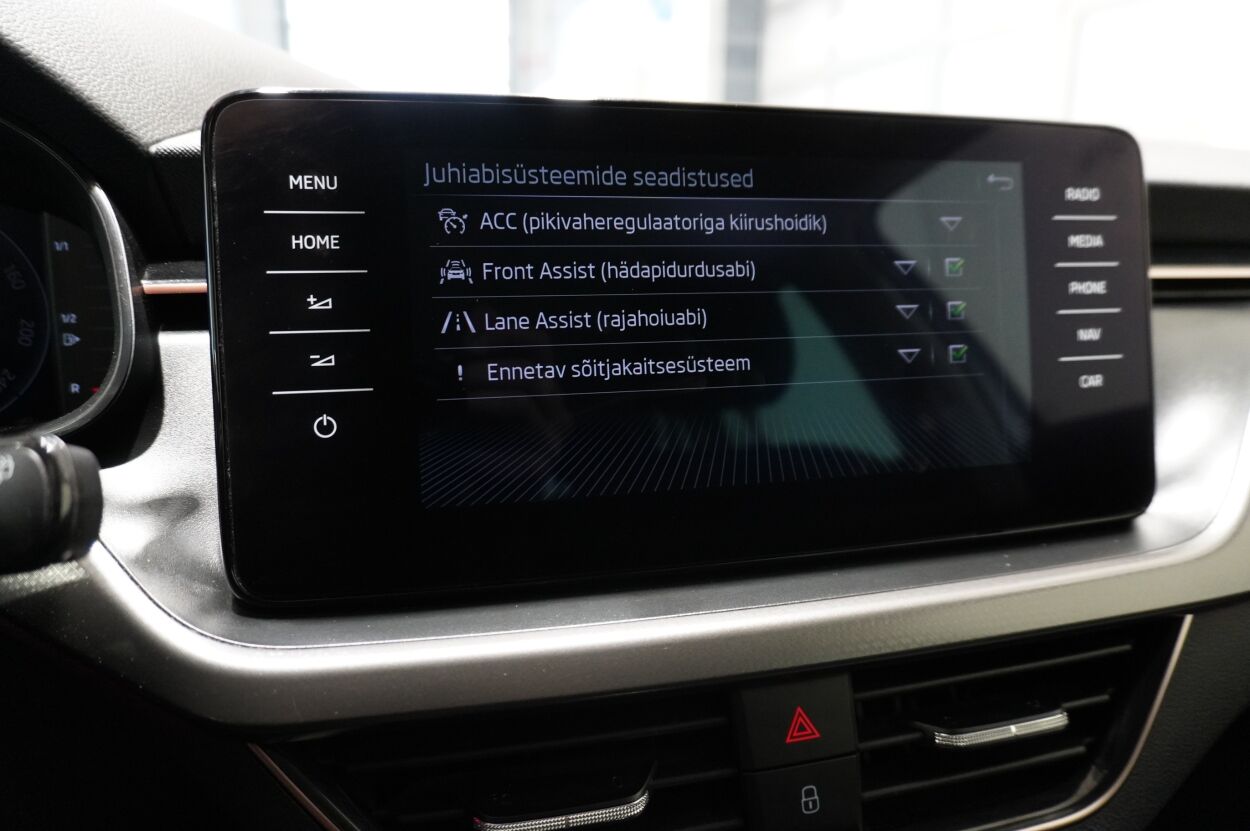 Varustus | automaatpidurdussüsteem, kliimaautomaatik, roolivõimendi (kiirustundlik), kesklukustus (puldiga), ABS pidurid, turvapadi, turvakardinad, immobilisaator, signalisatsioon (kaldeanduriga, mahuanduriga), lisapidurituli, stabiilsuskontroll, kokkupõrget ennetav pidurisüsteem, pidurdusjõukontroll, sõiduraja hoidmise abisüsteem, veojõukontroll, vihmasensor, ISOFIX lasteistme kinnitus, kõrvalistuja turvapadja väljalülitamise võimalus, automaatne paigalseismise funktsioon / mägistardi abi, udutuled (eesmised, tagumine), LED (tagatuled, päevatuled, lähituled, kaugtuled), päevasõidutulede automaatne lülitus, kaugtulede ümberlülitamise assistent, talverehvid (lamellrehvid), valuveljed, autoga antakse kaasa (suverehvid), rehvirõhu kontrollsüsteem, reguleeritav roolisammas (kõrgus ja sügavus), multifunktsionaalne rool, nahkkattega rool, stereo (USB pesaga, originaal), kõlarid, Apple CarPlay, Android Auto, navigatsiooniseade, autokompuuter, käed vabad süsteem, iluliistud salongis, taskud esiistmete seljatugedes, jalamatid (kummist), topsihoidjad (ees, taga), nahkkattega käigukanginupp, nahkkattega käsipidurikang, tekstiilpolster, istmed reguleeritava kõrgusega (juhiiste, kõrvalistuja iste), istmesoojendused, käetugi ees (laekaga), tagaistme seljatugi allaklapitav, elektrilised välispeeglid (soojendusega), 4x elektrilised akende tõstukid, toonitud klaasid, püsikiiruse hoidja (eessõitjaga distantsi hoidev), peeglid päikesesirmides, kohtvalgustid, parkimisandurid (taga), digitaalne näidikutepaneel, võtmeta avamine, võtmeta käivitus, start-stopp süsteem, 12v pistikupesad, reisiarvesti, paigaldatud tulekustuti, pagasikate, katusereelingud, kaubakinnituse konksud, elektrilise soojendusega esiklaas, tagaklaasi soojendus, välistemperatuuri näidik, tagaklaasi puhasti |