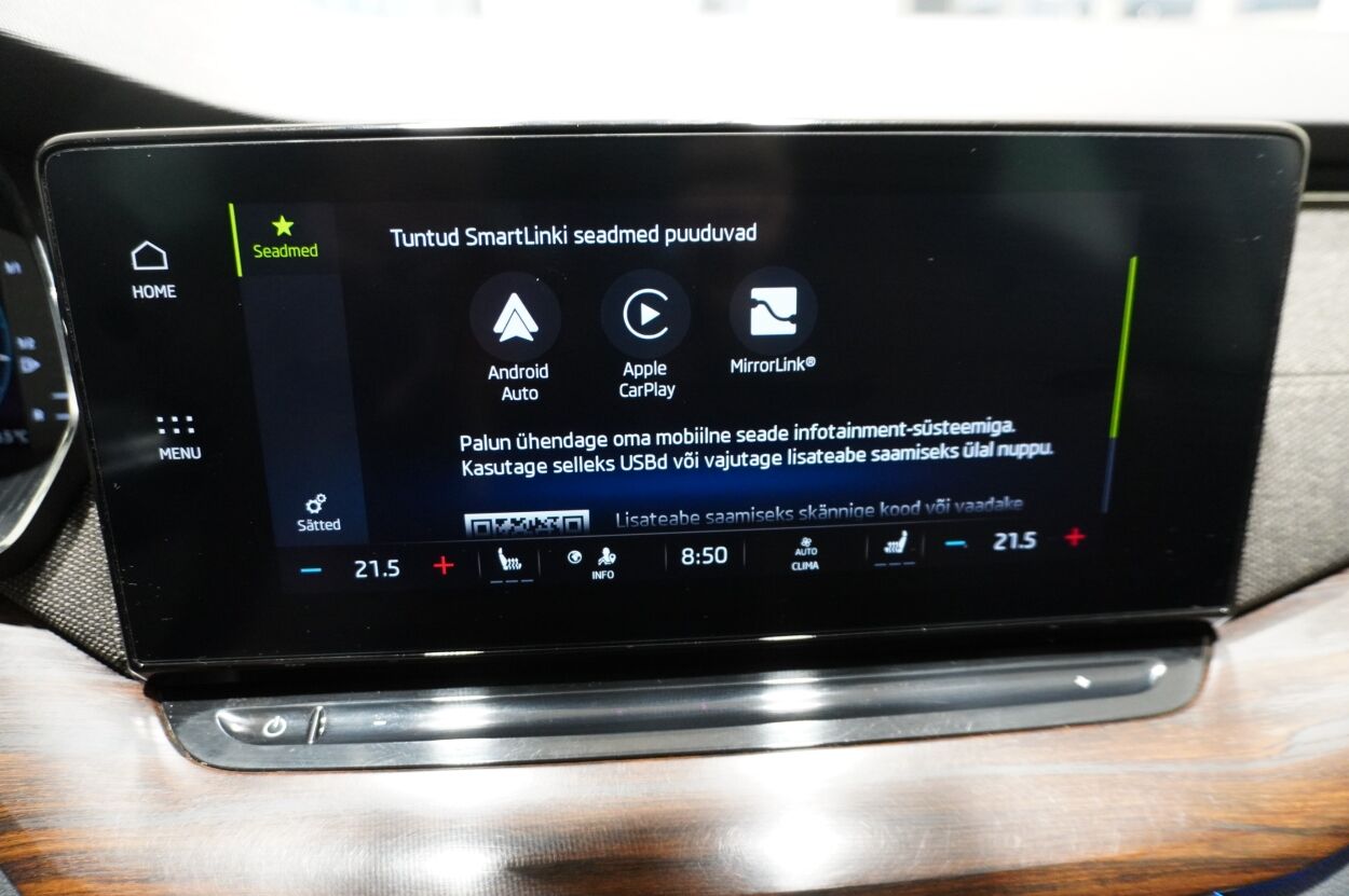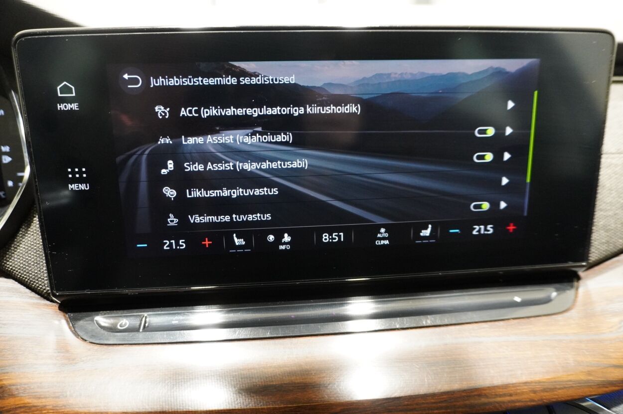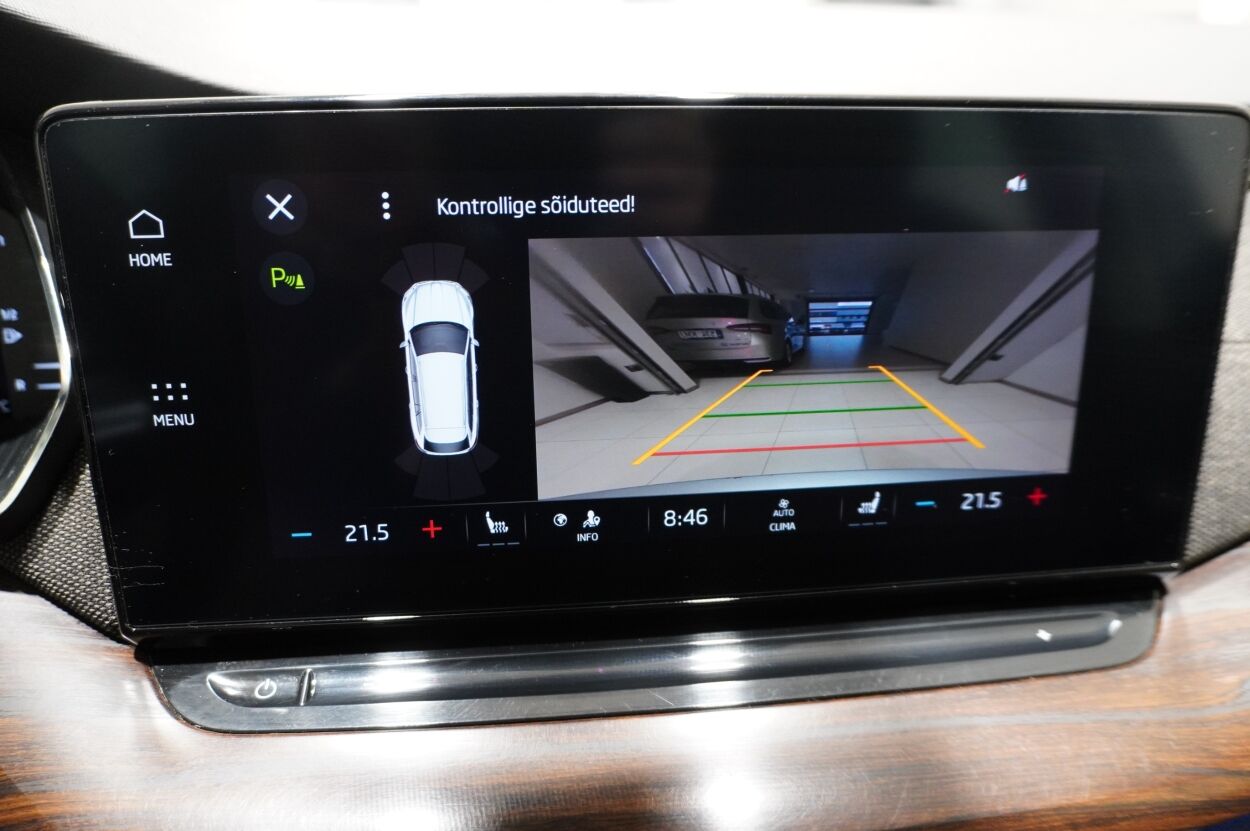 Varustus | automaatpidurdussüsteem, kliimaautomaatik, roolivõimendi (kiirustundlik), kesklukustus (puldiga), ABS pidurid, turvapadi, elektrooniline seisupidur, immobilisaator, signalisatsioon (kaldeanduriga, mahuanduriga), lisapidurituli, stabiilsuskontroll, kokkupõrget ennetav pidurisüsteem, pidurdusjõukontroll, sõiduraja hoidmise abisüsteem, liiklusmärkide tuvastus ja kuvamine, pimenurga hoiatus, veojõukontroll, vihmasensor, ISOFIX lasteistme kinnitus (ees, taga), kõrvalistuja turvapadja väljalülitamise võimalus, automaatne paigalseismise funktsioon / mägistardi abi, juhi väsimuse tuvastamise süsteem, valgustuspakett, udutuled (eesmised, tagumine), LED (päevatuled, tagatuled, lähituled, kaugtuled), esitulede pesurid, päevasõidutulede automaatne lülitus, kaugtulede ümberlülitamise assistent, suverehvid, valuveljed, rehvirõhu kontrollsüsteem, reguleeritav roolisammas (kõrgus ja sügavus), multifunktsionaalne rool, nahkkattega rool, käiguvahetus roolilt, stereo (USB pesaga, originaal), helivõimendi, kõlarid, Apple CarPlay, ekraan (ees), navigatsiooniseade (kaardiga), autokompuuter, käed vabad süsteem, iluliistud salongis (puitdekoor), taskud esiistmete seljatugedes, jalamatid (kummist), topsihoidjad (ees, taga), tekstiilpolster, istmed reguleeritava kõrgusega (juhiiste, kõrvalistuja iste), istmesoojendused, käetugi ees (laekaga), käetugi taga, tagaistme seljatugi allaklapitav, elektrilised välispeeglid (soojendusega, kokkuklapitavad), elektrilised akende tõstukid, toonitud klaasid, püsikiiruse hoidja (eessõitjaga distantsi hoidev), peeglid päikesesirmides, kohtvalgustid, parkimisandurid (ees, taga), parkimiskaamera, Coming-/Leaving-Home funktsioon, digitaalne näidikutepaneel, tagavararatas, võtmeta avamine, võtmeta käivitus, start-stopp süsteem, 12v pistikupesad, reisiarvesti, pakiruumi avamine elektriliselt (puldist), pagasikate, katusereelingud, kaubakinnituse konksud, veokonks (elektriline), haagise stabiliseerimissüsteem, tagaklaasi soojendus, välistemperatuuri näidik, tagaklaasi puhasti |
