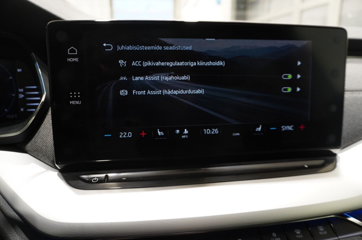 Varustus | kliimaautomaatik, automaatpidurdussüsteem, roolivõimendi (kiirustundlik), kesklukustus (puldiga), ABS pidurid, elektrooniline seisupidur, turvapadi, turvakardinad, immobilisaator, signalisatsioon (kaldeanduriga, mahuanduriga), lisapidurituli, kokkupõrget ennetav pidurisüsteem, stabiilsuskontroll, pidurdusjõukontroll, sõiduraja hoidmise abisüsteem, veojõukontroll, vihmasensor, ISOFIX lasteistme kinnitus (ees, taga), automaatne paigalseismise funktsioon / mägistardi abi, kõrvalistuja turvapadja väljalülitamise võimalus, valgustuspakett, udutuled (eesmised, tagumine), tulede korrektor, esitulede pesurid, LED (päevatuled, tagatuled, lähituled, kaugtuled), päevasõidutulede automaatne lülitus, kaugtulede ümberlülitamise assistent, talverehvid (naastrehvid), valuveljed, autoga antakse kaasa (suverehvid, valuveljed), rehvirõhu kontrollsüsteem, reguleeritav roolisammas (kõrgus ja sügavus), multifunktsionaalne rool, nahkkattega rool, soojendusega rool, käiguvahetus roolilt, stereo (USB pesaga, originaal), kõlarid, Apple CarPlay, Android Auto, ekraan (ees), autokompuuter, käed vabad süsteem, iluliistud salongis, taskud esiistmete seljatugedes, jalamatid (kummist), pagasiruumi matt, topsihoidjad (ees, taga), tekstiilpolster, istmed reguleeritava kõrgusega (juhiiste, kõrvalistuja iste), istmesoojendused, käetugi ees (laekaga), käetugi taga, tagaistme seljatugi allaklapitav, elektrilised välispeeglid (soojendusega, kokkuklapitavad), elektrilised akende tõstukid, toonitud klaasid, püsikiiruse hoidja (eessõitjaga distantsi hoidev), peeglid päikesesirmides, kohtvalgustid, parkimisandurid (ees, taga), parkimiskaamera, Coming-/Leaving-Home funktsioon, digitaalne näidikutepaneel, võtmeta avamine, võtmeta käivitus, start-stopp süsteem, 12v pistikupesad, reisiarvesti, paigaldatud tulekustuti, pakiruumi avamine elektriliselt (puldist), pagasikate, katusereelingud, kaubakinnituse konksud, veokonks (elektriline), haagise stabiliseerimissüsteem, elektrilise soojendusega esiklaas, tagaklaasi soojendus, välistemperatuuri näidik, esi- ja tagarataste porikummid, tagaklaasi puhasti, Soojendusega esiklaas (integreeritud soojenduskile), Adaptiivne püsikiirushoidik, säilitab eesliikujaga valitud pikivahet, vastavalt kiirendades või pidurdades (kuni seismajäämiseni), Esilaternate pesurid + klaasipesuvedeliku taseme indikaator, Esiistmete seljatugede tagakülg kaetud kunstnahaga, Alarmsüsteem koos kallutusanduriga, Elektrilise lukustussüsteemiga haagisekonks, adapteriga, 2-kodaraga soojendusega nahkrool raadio ja telefoni juhtimise ning DSG käiguvahetusega roolilt, 230 V pistik keskkonsooli tagaküljel, 2 USB-C liidest keskkonsoolis ees, 2 keskkonsooli tagaküljel, 1 salongipeegli kohal |