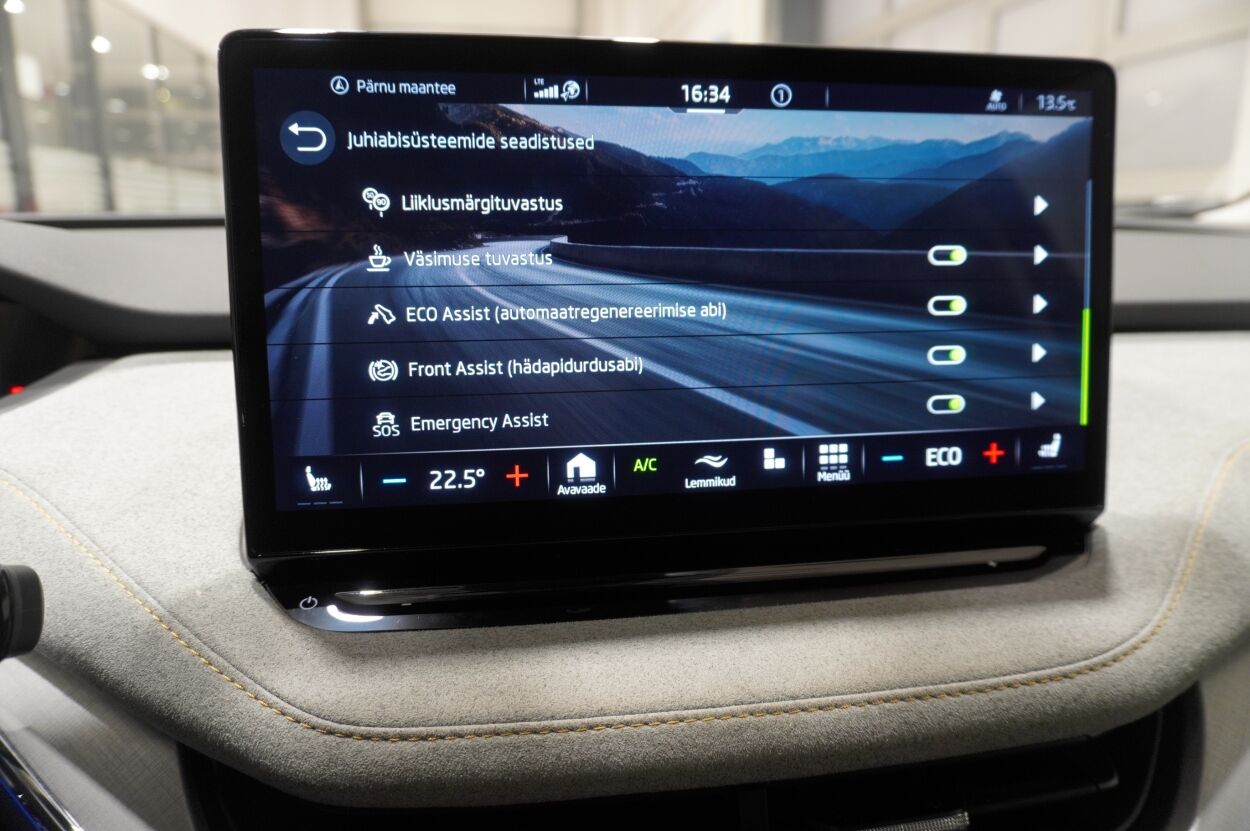 Varustus | kliimaautomaatik, automaatpidurdussüsteem, roolivõimendi (kiirustundlik), kesklukustus (puldiga), ABS pidurid, elektrooniline seisupidur, turvapadi, turvakardinad, immobilisaator, signalisatsioon (kaldeanduriga, mahuanduriga), lisapidurituli, kokkupõrget ennetav pidurisüsteem, stabiilsuskontroll, pidurdusjõukontroll, sõiduraja hoidmise abisüsteem, liiklusmärkide tuvastus ja kuvamine, pimenurga hoiatus, veojõukontroll, vihmasensor, ISOFIX lasteistme kinnitus (ees, taga), automaatne paigalseismise funktsioon / mägistardi abi, kõrvalistuja turvapadja väljalülitamise võimalus, juhi väsimuse tuvastamise süsteem, valgustuspakett, udutuled (tagumine), tulede korrektor, esitulede pesurid, LED (päevatuled, tagatuled, lähituled, kaugtuled), päevasõidutulede automaatne lülitus, kaugtulede ümberlülitamise assistent, talverehvid (naastrehvid), valuveljed, rehvirõhu kontrollsüsteem, reguleeritav roolisammas (kõrgus ja sügavus), multifunktsionaalne rool, nahkkattega rool, soojendusega rool, käiguvahetus roolilt, stereo (USB pesaga, originaal), kõlarid, Apple CarPlay, Android Auto, ekraan (ees), navigatsiooniseade (kaardiga), autokompuuter, käed vabad süsteem, iluliistud salongis, taskud esiistmete seljatugedes, jalamatid (tekstiilist, kummist), topsihoidjad (ees, taga), poolnahkpolster, istmed reguleeritava kõrgusega (juhiiste, kõrvalistuja iste), istmesoojendused, käetugi ees (laekaga), käetugi taga, tagaistme seljatugi allaklapitav, elektrilised välispeeglid (soojendusega, kokkuklapitavad), elektrilised akende tõstukid, toonitud klaasid, püsikiiruse hoidja (eessõitjaga distantsi hoidev), peeglid päikesesirmides, rulookardinad ustel, eraldi kliimaseade tagaistmetele, automaatselt tumenevad peeglid (väljas), kohtvalgustid, parkimisandurid (ees, taga), parkimiskaamera, Coming-/Leaving-Home funktsioon, digitaalne näidikutepaneel, telefoni juhtmevaba laadimine, võtmeta avamine, võtmeta käivitus, 12v pistikupesad, reisiarvesti, pagasikate, katusereelingud, kaubakinnituse konksud, tagaklaasi soojendus, välistemperatuuri näidik, tagaklaasi puhasti, Convenience Basic: KESSY, Wireless Charging, SunSet, täiendav mürasummutuspakett, juhi väsimusastet jälgiv süsteem, Drive Basic: roolisoojendus, rekuperatsiooni reguleerimise labad roolil, sõidurežiimi valikuvõimalus (Driving Mode Selection), Soojuspump, Light & View Basic: maatriks-funktsionaalsusega LED-esilaternad (valgusvihu jaotust, kaugust ja suunda reguleeritakse automaatselt), Full-LED tagatuled koos dünaamiliste suunatuledega taga, esilaternate pesurid, Disainipakett Lounge: istmekatted Alcantara/nahk, uksepaneelid viimistletud Alcantaraga, armatuurlaud nahaga, dekoratiivliistud „Anodized Cross“, Assisted Drive Plus: reavahetuse abisüsteem (Side Assist), Crew Protect Assist, Emergency Assist, adaptiivne kiirushoidik, aut. tumenevad küljepeeglid, Climate Basic: soojendusega esiistmed, soojendusega klaasipesuri düüsid ees, 3-tsooniline kliimaseade Climatronic, Family Plus: lauakesed esiistmete tagakülgedel, spetsiaalse kujundusega peatoed taga, rulookardinad tagumistel külgakendel, 230V pistik, USB-C liidesed |