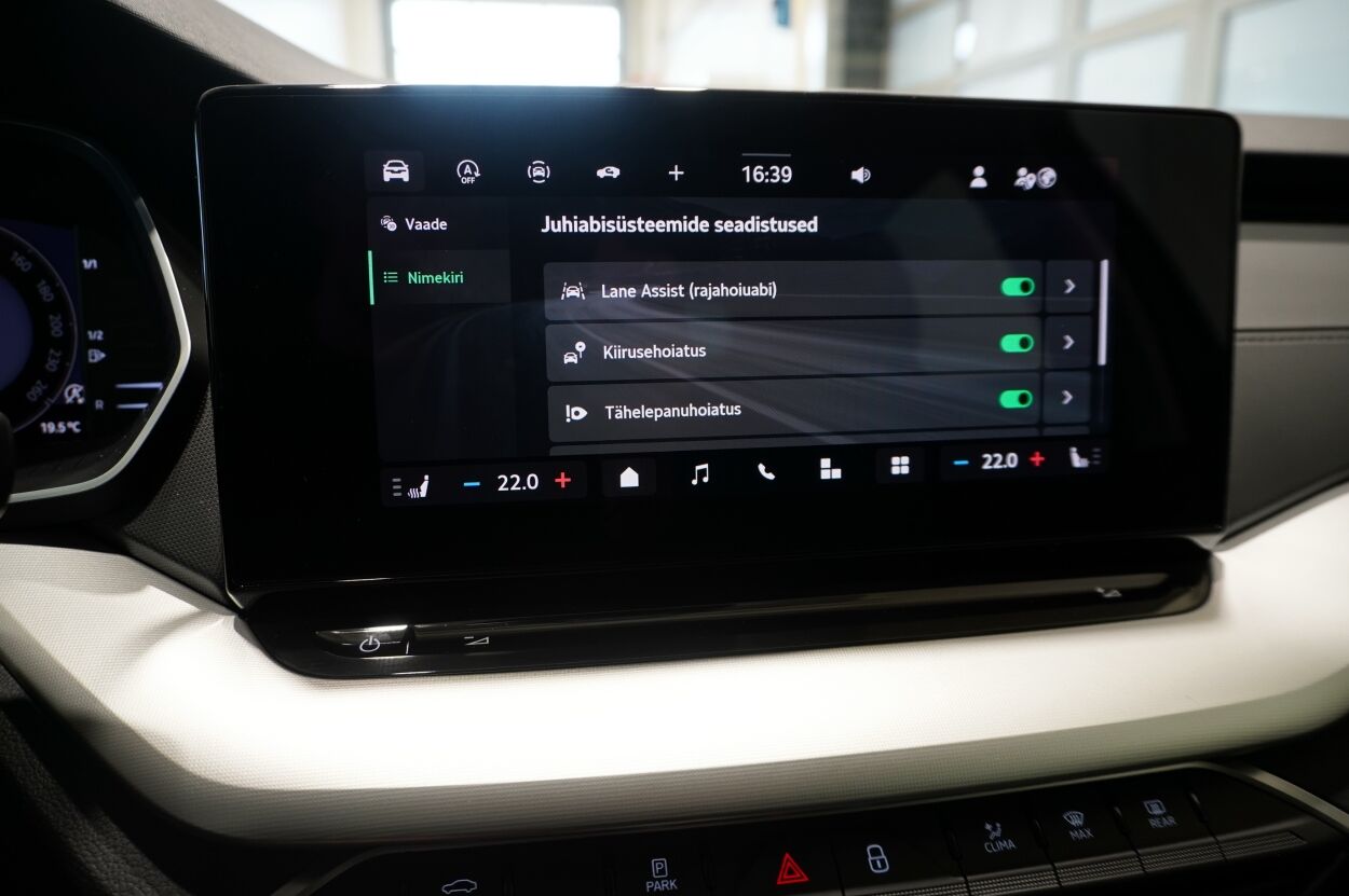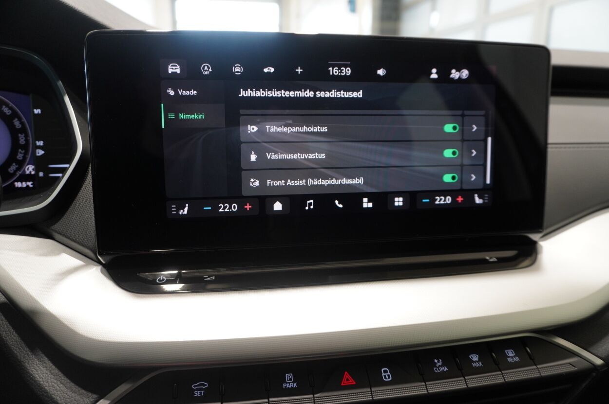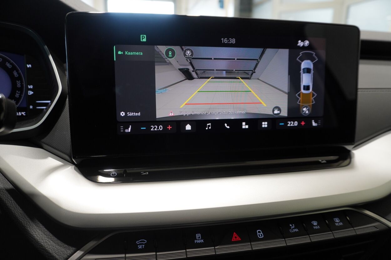 | Varustus | kliimaautomaatik, automaatpidurdussüsteem, roolivõimendi (kiirustundlik), kesklukustus (puldiga), ABS pidurid, elektrooniline seisupidur, turvapadi, turvakardinad, immobilisaator, signalisatsioon (kaldeanduriga, mahuanduriga), lisapidurituli, stabiilsuskontroll, kokkupõrget ennetav pidurisüsteem, sõiduraja hoidmise abisüsteem, pidurdusjõukontroll, liiklusmärkide tuvastus ja kuvamine, veojõukontroll, vihmasensor, ISOFIX lasteistme kinnitus (ees, taga), automaatne paigalseismise funktsioon / mägistardi abi, kõrvalistuja turvapadja väljalülitamise võimalus, juhi väsimuse tuvastamise süsteem, udutuled (tagumine), LED (päevatuled, tagatuled, lähituled, kaugtuled), päevasõidutulede automaatne lülitus, kaugtulede ümberlülitamise assistent, suverehvid, valuveljed, rehvirõhu kontrollsüsteem, reguleeritav roolisammas (kõrgus ja sügavus), multifunktsionaalne rool, nahkkattega rool, soojendusega rool, käiguvahetus roolilt, stereo (USB pesaga, originaal), kõlarid, Apple CarPlay, Android Auto, ekraan (ees), autokompuuter, käed vabad süsteem, iluliistud salongis, taskud esiistmete seljatugedes, jalamatid (tekstiilist, kummist), topsihoidjad (ees, taga), tekstiilpolster, istmed reguleeritava kõrgusega (juhiiste, kõrvalistuja iste), istmesoojendused, käetugi ees (laekaga), käetugi taga, tagaistme seljatugi allaklapitav, elektrilised välispeeglid (soojendusega, kokkuklapitavad), elektrilised akende tõstukid, toonitud klaasid, püsikiiruse hoidja, peeglid päikesesirmides, kohtvalgustid, parkimisandurid (ees, taga), parkimiskaamera, Coming-/Leaving-Home funktsioon, digitaalne näidikutepaneel, tagavararatas, võtmeta avamine, võtmeta käivitus, start-stopp süsteem, 12v pistikupesad, reisiarvesti, pakiruumi avamine elektriliselt, pagasikate, kaubakinnituse konksud, elektrilise soojendusega esiklaas, tagaklaasi soojendus, välistemperatuuri näidik, esi- ja tagarataste porikummid, 17" valuveljed Mensa Aero, rehvid 205/55 R17, Varuratas terasveljel, rehv 205/60 R16, 2-kodaraga soojendusega nahkrool raadio ja telefoni juhtimise ning DSG käiguvahetusega roolilt, Soojendusega esiklaas (integreeritud soojenduskile), Tagastange kaitsekleebis, Täis kütusepaak |