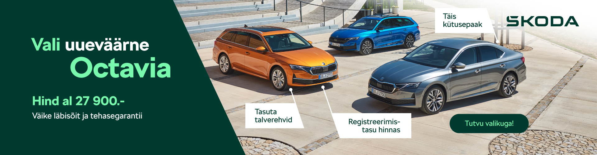 Škoda Octavia on olnud pikka aega Škoda enimmüüdud mudel ja on populaarne nii era- kui ka äriklientide seas. Tegemist on suurepärase ja töökindla sõidukiga, mis meeldib kõigile, pakkudes täpselt seda, mida Sa vajad.